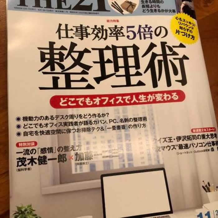 THE21(PHP Business) 2019年11月号 仕事効率5倍の整理術~どこでもオフィスで人生が変わる 【生産性を極限に高めるオフィスの整理術】に記事が掲載 編集部のデスク片づけを通して、仕事を瞬時に処理!「機 […]